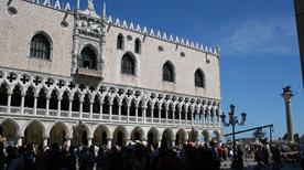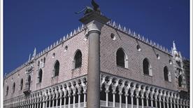 El primer Palacio del poder Ducal, pertenece al siglo IX, cuando Angelo Partecipazio trasladó la sede del gobierno de la isla de Malamocco a la zona de Rialto. No hay informaciones precisas sobre esta construcción, que ocupaba el lugar del Palacio, pero era una especie de fortaleza con murallas y torres macizas. Estaba aislada por un canal y allí se establecieron las oficinas públicas, el palacio de justicia, las cárceles, la residencia del dux, las escuderías, armerías y demás oficinas. La forma que conocemos hoy, le fue dada durante los siglos XIV y XV. En la actualidad, el edificio es el ejemplo más representativo y sugestivo de la arquitectura gótica veneciana; aunque cambió constantemente durante los siglos siguientes, con el aporte de la ampliación , la restauración y su embellecimiento. Antonio da Ponte y Andrea Palladio como arquitectos, Tiziano y Veronese como pintores, fueron llamados para realizar su interior.