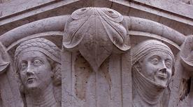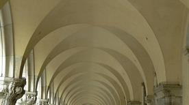"La Porta della Carta", obra de Bartolomeo Bon, le otorga al patio monumental un estilo renacentista-bizantino. Construido en el siglo XVI-XVII es muy elegante, solemne y magnífico. Aquí encontramos la Scala dei Giganti de Antonio Rizzo, el símbolo por excelencia del Reino de la República. Los dos gigantes de Sansovino que decoran la escalera son: Marte y Neptuno, representantes de la omnipotencia sobre la tierra y el mar de la Serenissima. La Sala dei Censori, con pinturas de Tintoretto y la Sala dell'Avogaria de Comùn (de los abogados de la municipalidad), que permite acceder al Puente de los Suspiros. En el primer piso, al cual se accede a través de la Scala d'Oro, se encuentran los apartamentos ducales y otras salas.