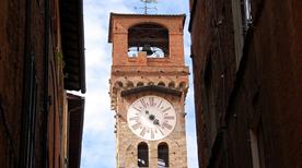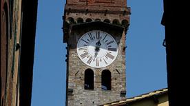 El reloj, situado en la parte superior de la torre, fue instalado en el año 1392 por un artesano oriundo de Lucca y, aún hoy, se puede visitar el mecanismo de cuerda manual. A continuación, en el año 1754, se instaló un reloj con cuadrante moderno, el mecanismo fue instalado por Louis Simon, relojero de Ginebra. Las campanas fueron hechas por el fundidor Stefano Filippi. La campana más grande, señala cada hora, mientras que la campana más pequeña, los cuartos de hora.