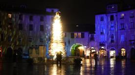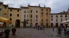 Las tiendas y terrazas de cafés presentes en esta plaza, atraen a los turistas todo el año. El arco de Via Fillungo, no es el único para el ingreso a la plaza, hay otros tres, pero solamente aquel más bajo, conserva su estructura original.
