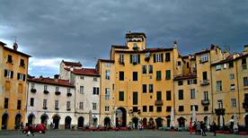 Recorriendo Via Filllungo, entre puestos de souvenirs y diversos negocios, hay un arco que atraviesa el umbral y nos introduce en uno de los espacios públicos más bellos de la Toscana y de Italia.