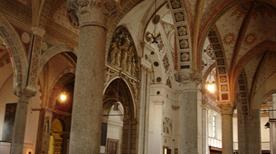 A pesar de la terrible devastación, gracias a la iniciativa y al espíritu de Milán, la iglesia pudo volver a su antiguo esplendor, mediante la restauración de las valiosas obras de arte que se han conservado. En la quinta capilla, se conserva una verdadera obra maestra: un desfile de ángeles en yeso. Preciosos son las bancos del período 500, con incrustaciones de piezas de diversos tipos de madera. Imperdible es la tribuna bramantesca: la gracia extrema del presbiterio. Aquí se puede admirar uno de los más bellos coros del Renacimiento. En el bonito claustro, adyacente a la tribuna sobre la puerta que conduce a la sacristía, se puede admirar un fresco de Bramantino.