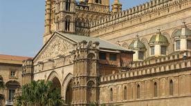 En el siglo IX, con la llegada de los Sarracenos, se transforma en una mezquita. Los Normandos querían construir aquí, una catedral magnífica, que representara a sus poderes y cristiandad. De esta manera, comenzaron los trabajos en Monreale, conducidos por el arzobispo Gualtiero Offamilio. Su interno, daba testimonio de la sensibilidad religiosa y arquitectónica del norte europeo y bizantina. Mientras que en el exterior, trabajaban los maestros de proveniencia árabe. De hecho, la torre con forma doble, es típica de las catedrales normandas de Francia e Inglaterra, en cambio la decoración, contiene muchos elementos que se presentan también en algunas mezquitas.