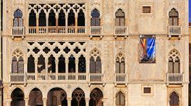 Fue construido durante la primera mitad del 400, por Marin Contarini, hijo de Antonio Contarini, procurador de San Marcos. El edificio anterior, fue parcialmente demolido e integrado al nuevo. Ca'd'Oro, es un edificio pequeño pero muy bello, otro ejemplo del gótico veneciano que típicamente muestra motivos bizantinos y orientales. El hijo del propietario, Pietro, tuvo que dividir el palacio entre las hijas y de esta manera, comenzó la historia turbulenta del Palacio Ca'd'Oro.