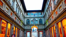 Es la galería italiana más ilustre y una de las más destacadas en el mundo. Ofrece un panorama de las diversas escuelas de la pintura Florentina, a través de auténticas obras de arte. Comprende colecciones de la escuela italiana (en particular de la Véneta), un núcleo precioso de escuela flamenca, artistas alemanes y holandeses como: Dorer, Rembrandt, Rubens y una célebre colección de autorretratos. Completan estas obras las esculturas antiguas y una colección de tapices.