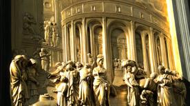 Para finalizar, encontramos también la Puerta Este ( la más famosa) denominada también del Paraíso: una obra de Lorenzo Ghiberti, hecha por encargo en el año 1425 y dividida en diez paneles que representan las Historias del Antiguo Testamento.