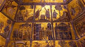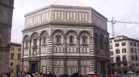 El Baptisterio de la ciudad de Florencia, está dedicado a San Juan (San Giovanni). Su construcción pertenece a los siglos XI-XIII. Su externo se encuentra recubierto de mármol blanco y verde. De particular importancia son, en la parte externa del edificio, las tres puertas en bronce y en el interior, los mosaicos de la cúpula. Las tres puertas de bronce son: la Puerta Sur de Andrea Pisano, que representa las Historias de la Vida del Bautista y las Alegorías de la Virtud; la Puerta Norte del Ghiberti, con Historias del Nuevo Testamento, Evangelistas y Doctores de la Iglesia.