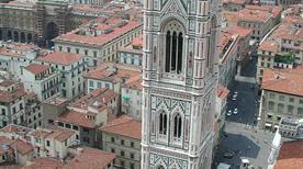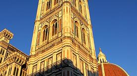 Revestida de mármol blanco, verde y rosa, la torre-campanario de la Catedral de Florencia (iglesia dedicada a Santa María del Fiore) fue el fruto del trabajo de Andrea Pisano y Francesco Talenti entre el año 1334 y 1359. El autor del proyecto fue Giotto ( de hecho, la obra posee su nombre). El campanario, con una altura de más de 84 metros, está decorado con azulejos hexagonales y romboidales, obra de Andrea Pisano, Alberto Arnoldi y Luca della Robbia.
