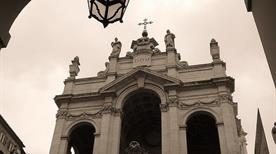 En su interior, la mayoría de los altares fueron reconstruidos entre 1920 y 1930, mientras que el del ábside lo diseñó Bernardo Antonio Vittone, con esculturas de Simone Martinez en el año 1743. Se enriquece con "la Anunciación" de Claudio Francesco Beaumont, proveniente de la Eremo di Torino. A la derecha del altar mayor, se abre la capilla denominada Capella dell'Addolorata diseñada por Ignazio Antonio Giulio en 1773, donde observamos la "Piedad" de Stefano Maria Clemente, diseñada por Beaumont y pintada por los estudiantes Molinari, Peyrolerij y Rapous. Como testimonio del setecientos, todavía nos queda el coro lígneo, obra de Carlo Maria Ugliengo y Lorenzo Enon, sobre un diseño de Giovanni Luigi Cassetta.