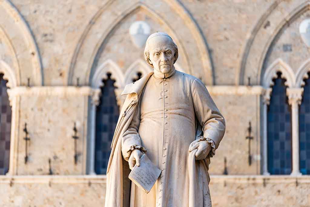 Piazza Salimbeni y reservar para realizar la visita a las obras del Palacio Salimbeni que es el más importante y posee la dirección del Banco de Siena del Monte dei Paschi, fundada hace más de 500 años.
