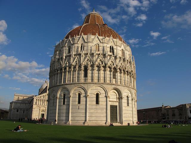 La sinagoga de Pisa data de principios del siglo XVII. Fue modificado por primera vez en 1785 y completamente renovado en 1863 por Marco Treves. Una vez construida la fachada, también se renovó el interior, manteniendo, sin embargo, la misma división de los espacios.